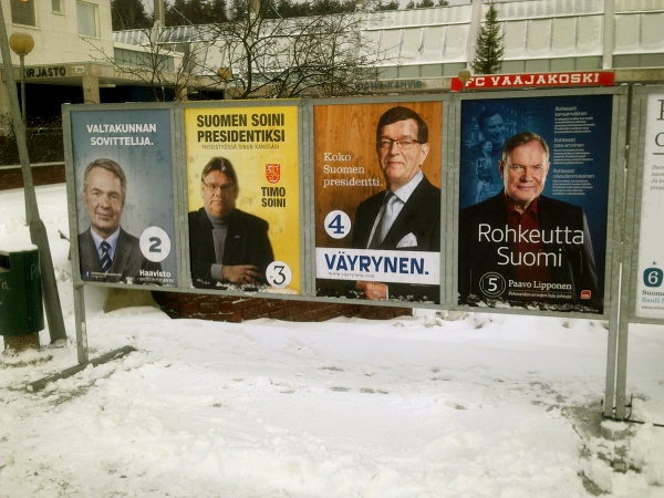 ”... ERI EHDOKKAIDEN TÄRKEIMMÄT VAALITEEMAT OVAT KIRKASTUNEET. SAULI NIINISTÖN KESKEISIN TEEMA ON SELKEIDEN MIELIPITEIDEN VÄLTTELY JA PAAVO LIPPOSELLA KAUNASANOMALEHTIEN BOIKOTOINTI.