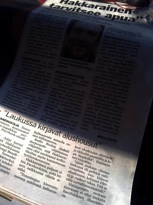 ILTA-SANOMAT ON SAANUT TIEDON KANSANEDUSTAJA TEUVO HAKKARAISEN KALSAREISTA.